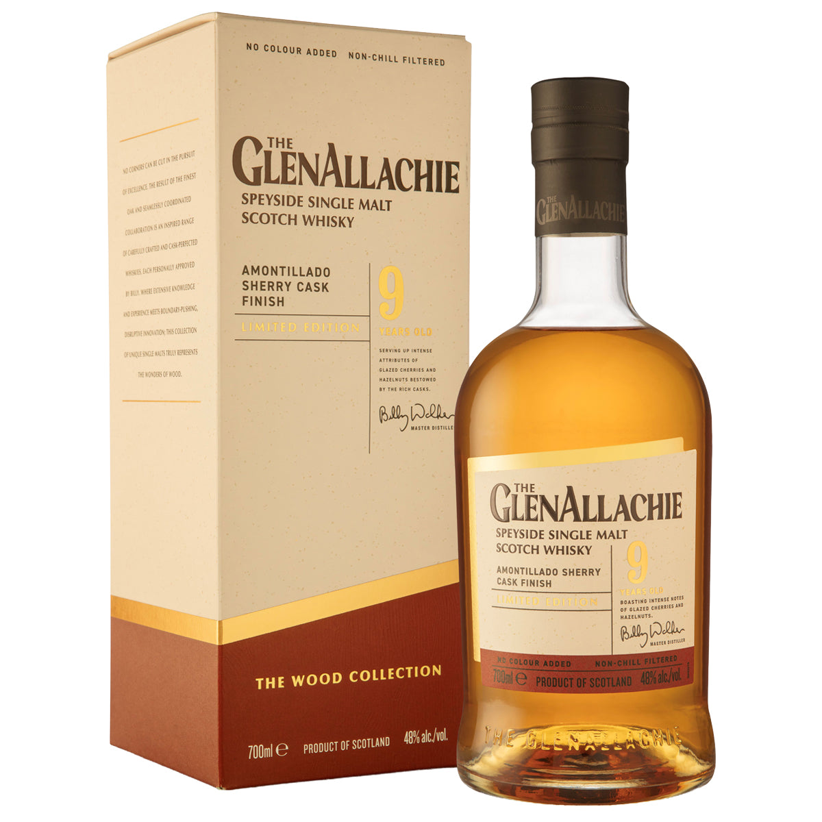 A limited edition from the GlenAllachie distillery in Speyside, first released in 2024 as part of their Wood Collection series. Distilled in 2014, matured in American oak ex-bourbon barrels before being finished in Amontillado sherry hogsheads sourced from Jerez. Non-chillfiltered, naturally coloured and bottled at 48%.